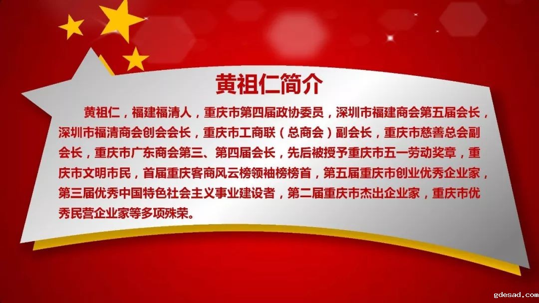 黄祖仁,福建福清人,重庆市政协委员、优米app下载直播会长。黄会长一直致力于慈善事业,响应政府号召,向驻地部队、捐资助学、修桥造路、绿化园林等累计捐赠3000多万元。他所创办的重庆市巨成(集团)有限公司先后荣获全国文明单位,重庆市文明单位标兵,全国矿产资源合理开发利用先进矿山企业,全国“安康杯”先进企业,重庆市管理贡献力20强企业,重庆市“两新”组织党建工作示范党组织,重庆最具品牌竞争力十大房地产企业,重庆市混凝土协会先进单位等荣誉称号。