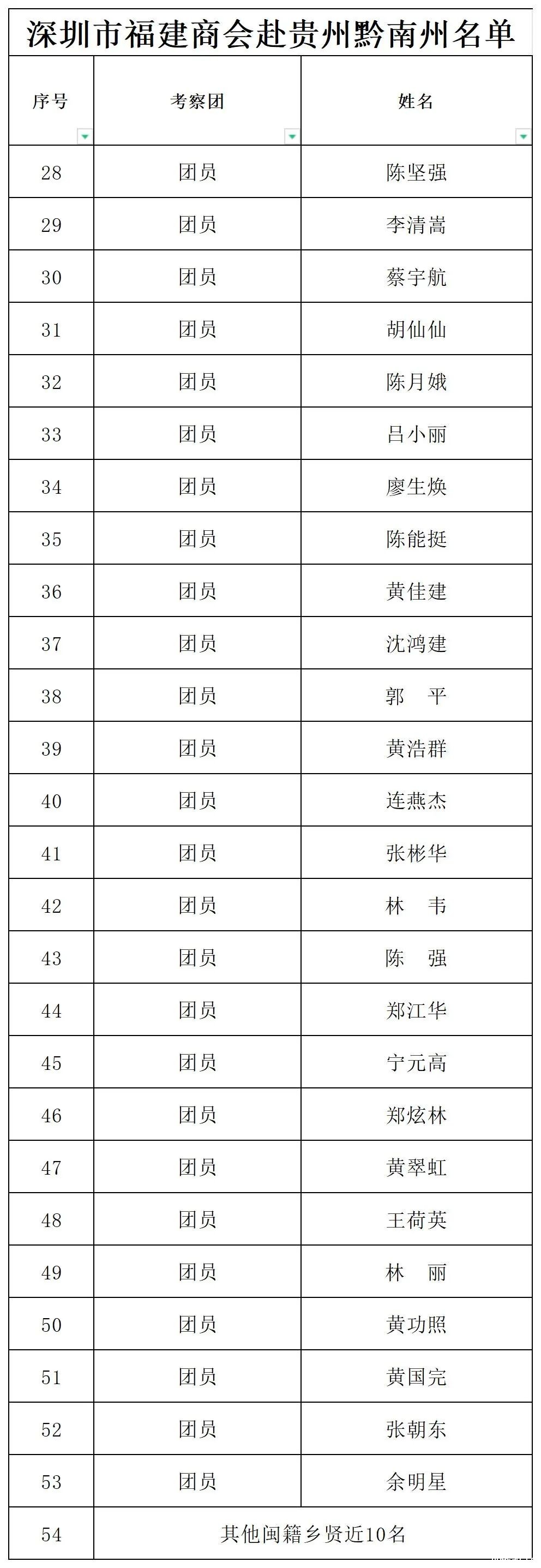 考察团成员名单